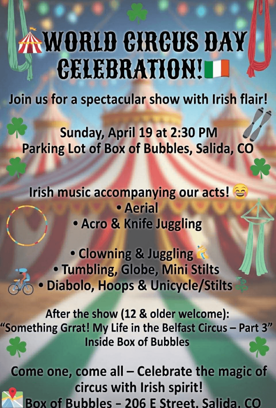 Wondering where to give this End of Year? Why not invest in Joy, Friendship, Fitness, Community, laughter, and fun? Why not help keep the Salida Circus alive with a tax-deductible contribution?